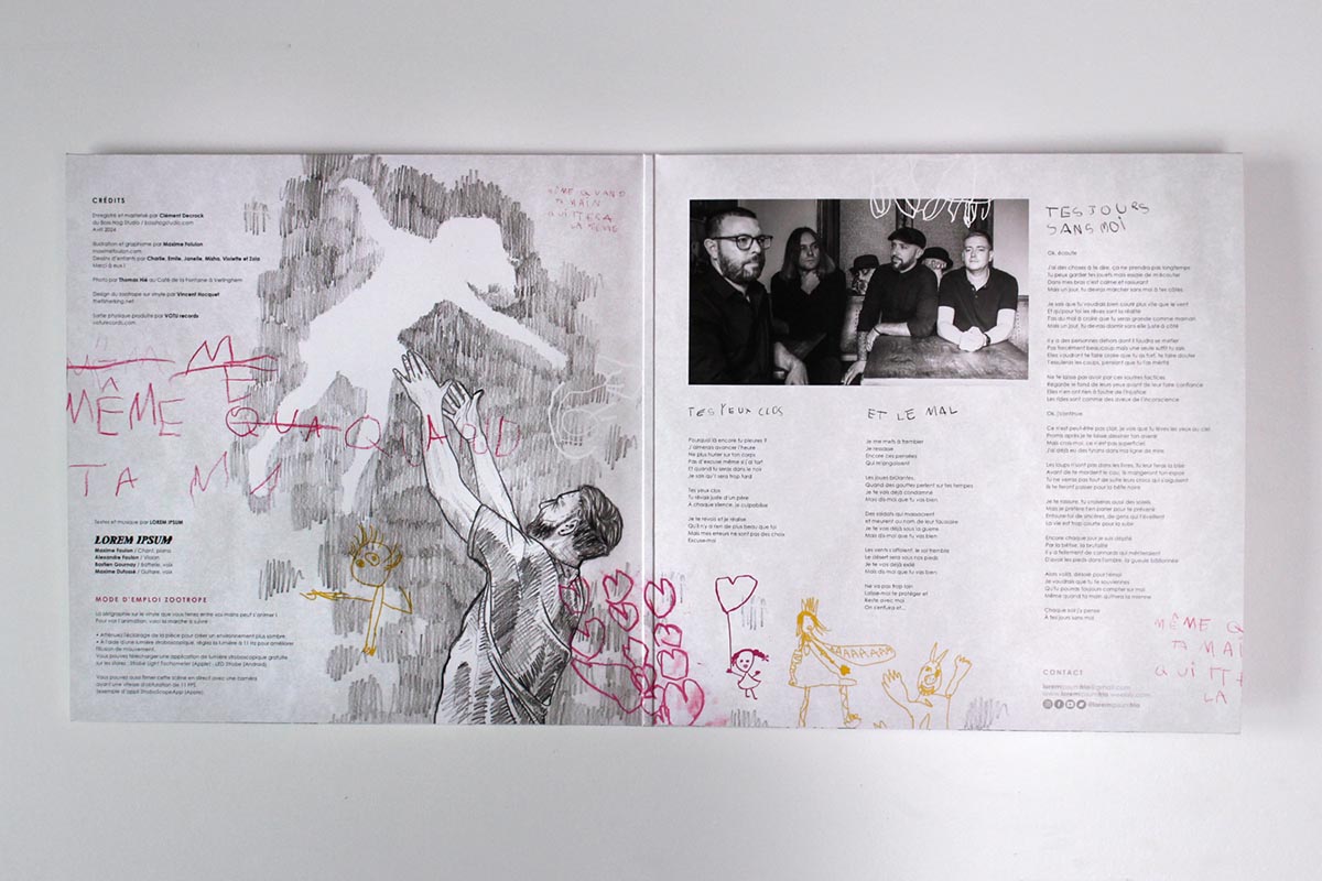 When Lorem Ipsum was working on the physical release of their EP Même quand ta main quittera la mienne, Maxime Foulon, who designed the cover art, asked me if I wanted to collaborate on the project.